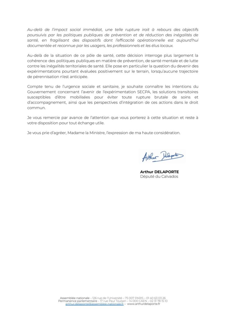 👉 Ci-dessous, le courrier que j’ai adressé à la ministre de la Santé pour assurer la pérennité des financements.