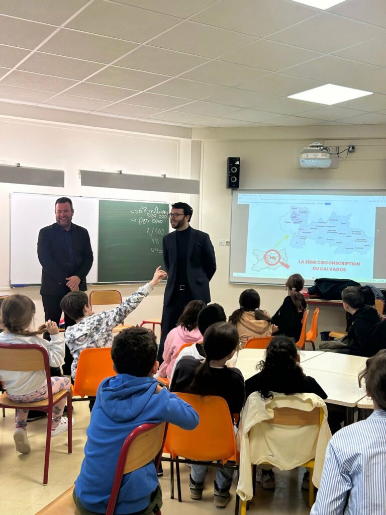 Très heureux d’avoir pu, avec Damien de Winter, maire de Giberville, rencontrer les élèves de l’école Louis Aragon.
